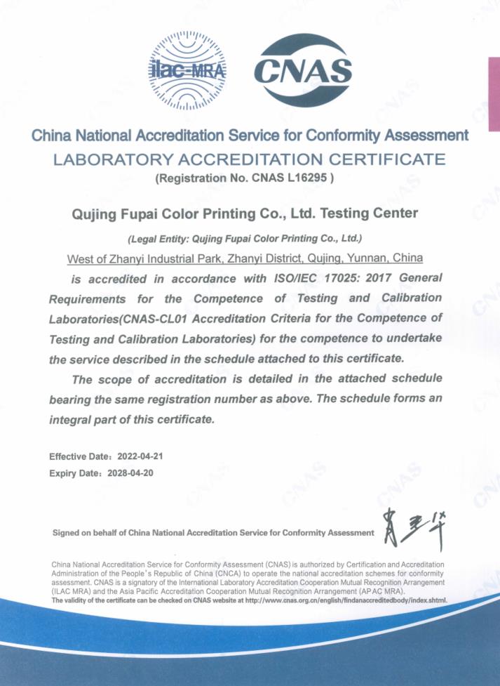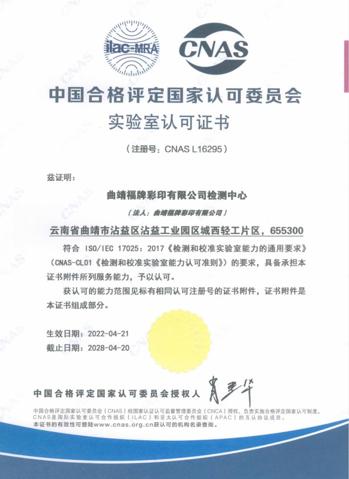 實驗室認可證書
